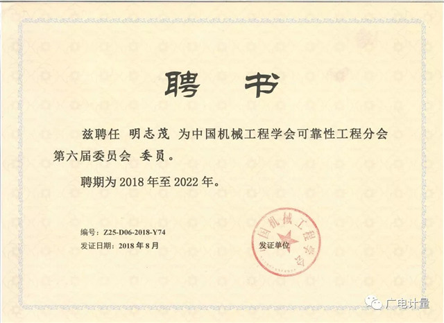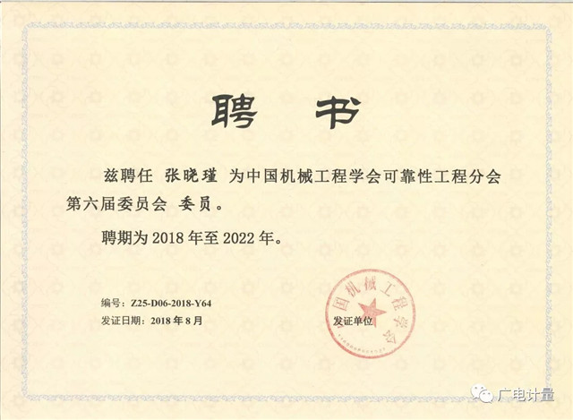 廣電計量技術專家當選為中國機械工程學會可靠性工程分會第六屆委員會委員