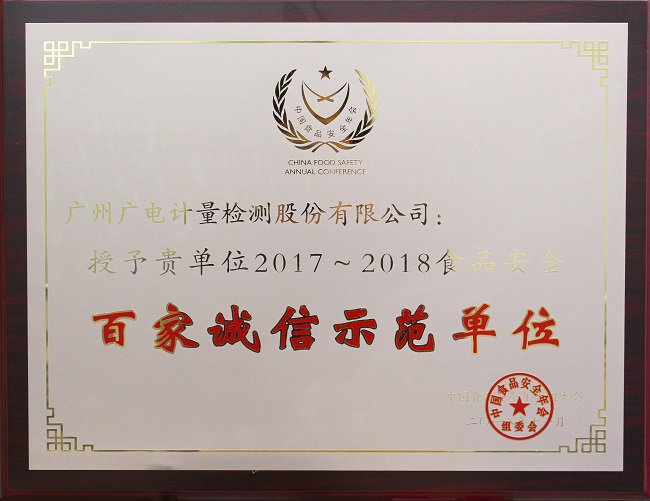 廣電計量亮相第十六屆中國食品安全年會 獲評“食品安全百家誠信示范單位”