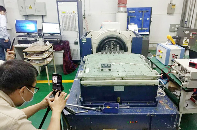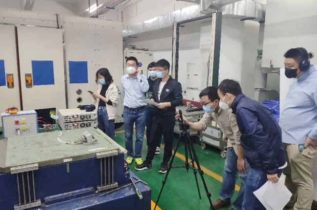 為保證遠(yuǎn)程目擊試驗(yàn)真實(shí)、可靠,審查組工程代表首先向申請(qǐng)人和廣電計(jì)量技術(shù)負(fù)責(zé)人宣貫了審查組的要求,明確了遠(yuǎn)程審查的開(kāi)展前提和實(shí)施原則,并由委任制造檢查代表在廣州試驗(yàn)現(xiàn)場(chǎng)完成了試驗(yàn)前制造檢查。本次遠(yuǎn)程目擊試驗(yàn)采取固定鏡頭和移動(dòng)鏡頭相配合的方式,保證試驗(yàn)現(xiàn)場(chǎng)實(shí)況的360°全覆蓋。試驗(yàn)條件準(zhǔn)備就緒后,審查組、申請(qǐng)人和廣電計(jì)量技術(shù)人員按照試驗(yàn)大綱,共同開(kāi)展了試驗(yàn)?zāi)繐魴z查,確認(rèn)測(cè)試數(shù)據(jù);并由審查組根據(jù)目擊檢查情況,向申請(qǐng)人反饋檢查結(jié)果,圓滿完成了檢查工作。