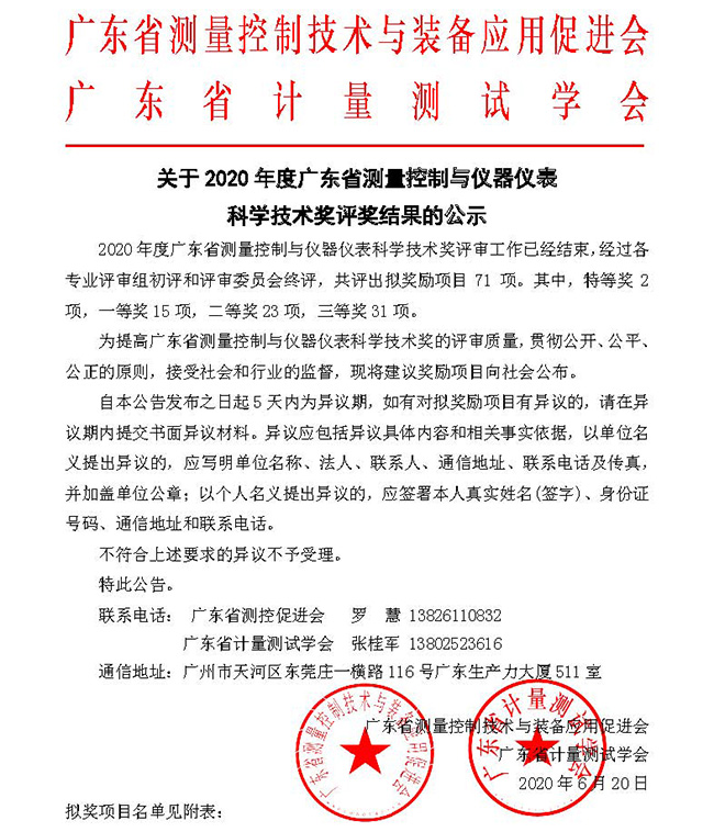 廣東省測量控制與儀器儀表科學(xué)技術(shù)獎是由廣東省測量控制與裝備應(yīng)用促進會、廣東省計量測試學(xué)會聯(lián)合設(shè)立和承辦,面向全省測量控制與儀器儀表領(lǐng)域的科技獎項,旨在表彰測量控制與儀器儀表科技工作中做出突出貢獻的集體和個人,鼓勵測量控制與儀器儀表領(lǐng)域廣大科技工作者的積極性、創(chuàng)造性,促進廣東省測量控制與儀器儀表科學(xué)技術(shù)的發(fā)展,提高測量控制與儀器儀表領(lǐng)域的綜合實力和水平。