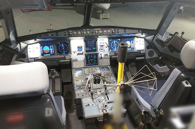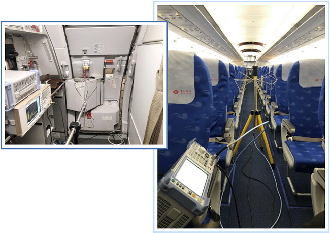 技術團隊在濟南遙墻機場對衛星通信系統改裝后的青島航空空客A320飛機整機進行T-PED測試,依據DO-363標準及飛天聯合要求對加裝的WIFI系統進行前門耦合、后門耦合測試,測試覆蓋WIFI、GPS、HF、VHF、VOR、ILS等多個系統。因國內沒有類似案例可參考,試驗位置的選取、試驗頻段的合理確定、敏感度判據的篩選、對試驗標準的剪裁等對廣電計量技術團隊來說都是全新的挑戰。同時,由于機場白天管制,測試只能在深夜進行,大風、低溫和連續通宵對試驗人員的身體和心理都是考驗。