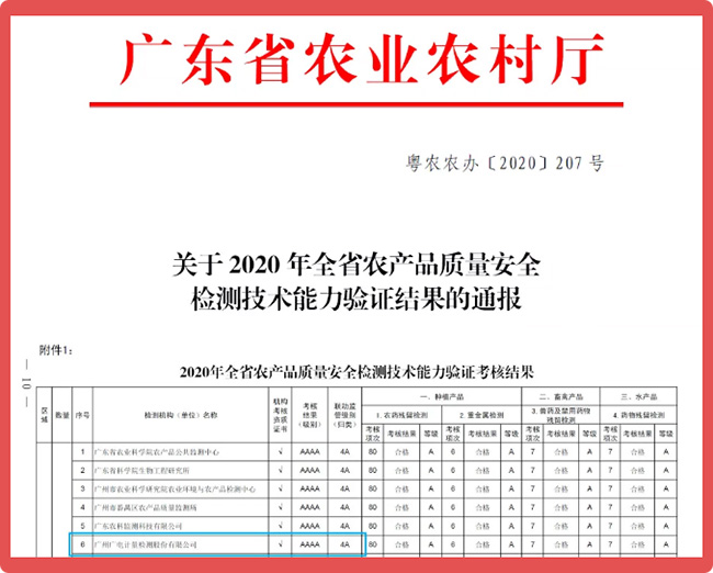 榮獲全項4A級!廣電計量通過廣東省農(nóng)業(yè)農(nóng)村廳2020年全省農(nóng)產(chǎn)品質(zhì)量安全檢測技術(shù)能力驗證
