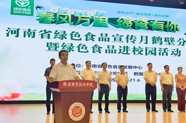 6月10日,河南省綠色食品宣傳月鶴壁分會場暨進校園活動在鶴壁職業技術學院舉行。省農業農村廳黨組成員、副廳長趙耕、鶴壁市人大副主任肖海水出席活動并講話。鶴壁市職業技術學院院長蔡太生致詞。省綠色食品發展中心主任余新華、省綠色食品發展中心書記樊恒明、省綠色食品發展中心副主任宋偉、鶴壁市農業農村局副局長黃華出席活動。活動由鶴壁市政府副秘書長杜永慶主持。廣電計量黨委委員、河南廣電計量總經理劉余受邀作為第三方檢測機構代表出席。