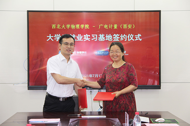 7月13日,廣電計(jì)量檢測(cè)(西安)有限公司(簡(jiǎn)稱(chēng)西安廣電計(jì)量)與西北大學(xué)物理學(xué)院舉行“大學(xué)生就業(yè)實(shí)習(xí)基地”簽約授牌儀式。雙方圍繞產(chǎn)學(xué)研合作與人才培養(yǎng)等方面進(jìn)行了深入洽談,并簽署校企合作協(xié)議。西北大學(xué)物理學(xué)院黨委書(shū)記、常務(wù)副院長(zhǎng)張軍麗,副院長(zhǎng)鄭新亮、師耀武,黨委副書(shū)記楊軍良;西安廣電計(jì)量總經(jīng)理李軍等出席了簽約授牌儀式。