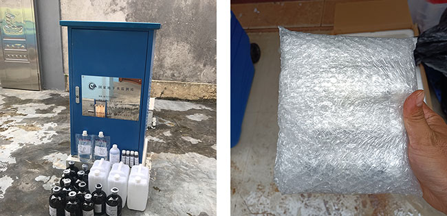 點(diǎn)位分布散、任務(wù)量大,前期準(zhǔn)備工作尤為關(guān)鍵。在“硬件”方面,項(xiàng)目組首先統(tǒng)計(jì)各地任務(wù)量,提前采購(gòu)所需的設(shè)備和耗材。結(jié)合車輛實(shí)際使用情況,項(xiàng)目組把部分無(wú)法攜帶耗材統(tǒng)一存放,根據(jù)項(xiàng)目進(jìn)展以及每天統(tǒng)計(jì)耗材消耗速度,提前把所需耗材寄往監(jiān)測(cè)點(diǎn)附近,完成遠(yuǎn)程及時(shí)補(bǔ)給;在“軟件”方面,不同于常見的地表水監(jiān)測(cè)任務(wù),地下水監(jiān)測(cè)對(duì)在線監(jiān)測(cè)設(shè)備的取放方法、洗井設(shè)備(泵)的選擇及采樣時(shí)間等都要求極高。為提升采樣人員的專業(yè)技能,項(xiàng)目組多次組織實(shí)驗(yàn)室內(nèi)部通過(guò)遠(yuǎn)程教學(xué)培訓(xùn),并與各市水文局溝通,安排公司技術(shù)人員跟隨工作人員到進(jìn)行現(xiàn)場(chǎng)演練學(xué)習(xí)。