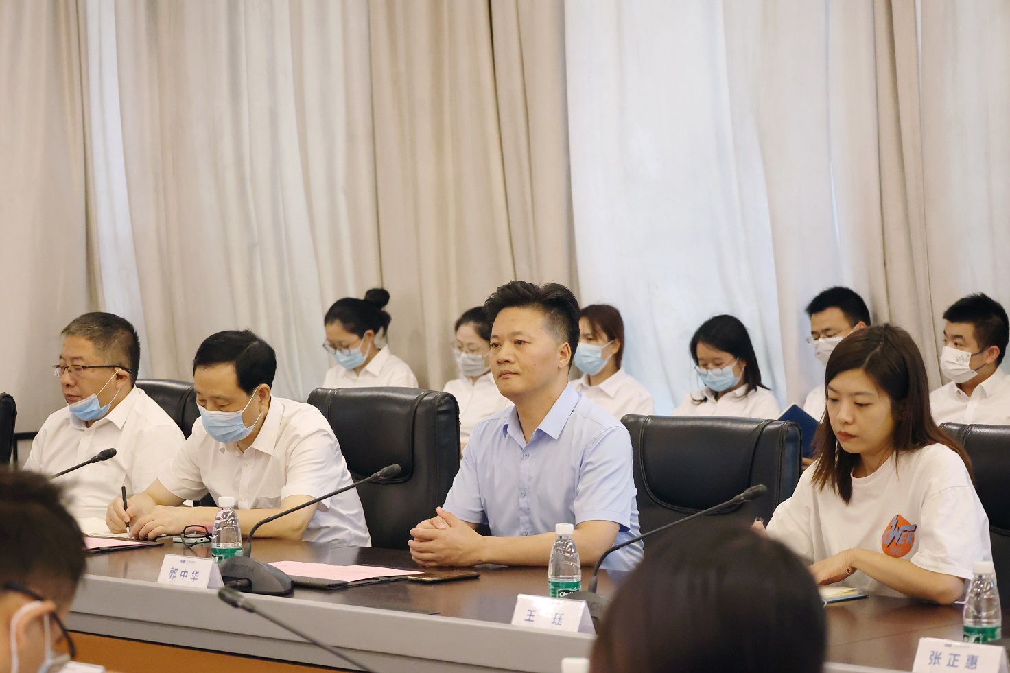 無錫市科協(xié)副主席王鎮(zhèn),國際部部長許娟;新吳區(qū)科協(xié)主席郭中華;無錫廣電計量總經(jīng)理儲程晨,副總經(jīng)理羅平、龍陽、許策、陳舒文出席會議。