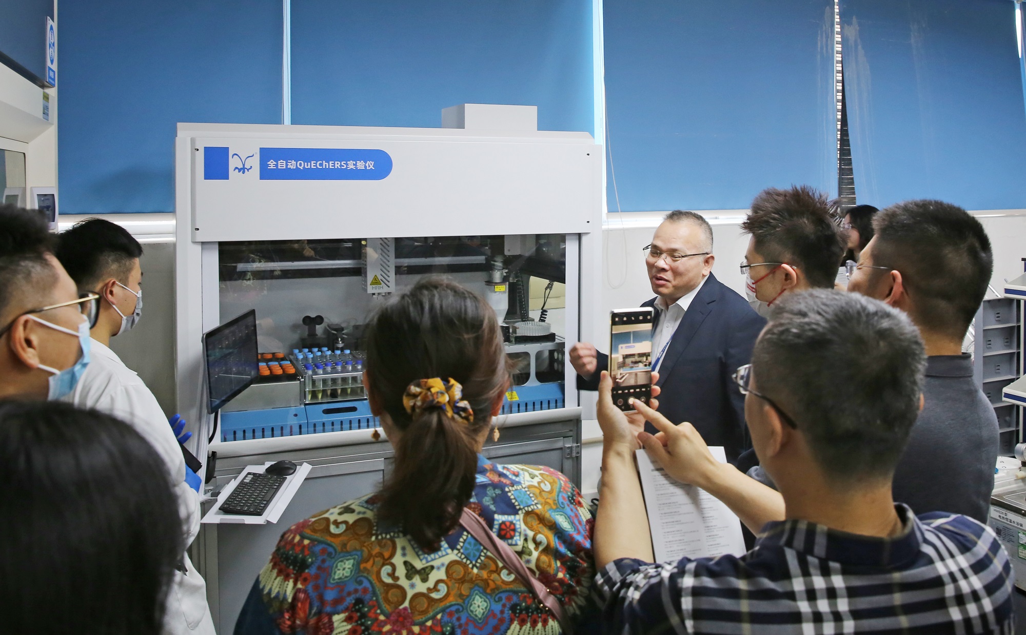 隨后,嘉賓一行參觀廣電計量科學(xué)城生態(tài)環(huán)境實驗室、食品檢測實驗室及化學(xué)實驗室,實地觀摩高端智能化設(shè)備,詳細了解公司在生態(tài)環(huán)境、食品、化學(xué)等領(lǐng)域的檢測服務(wù)能力。在食品科普互動環(huán)節(jié),嘉賓現(xiàn)場體驗滴定變色科普實驗、微生物觀察實驗,零距離了解食品檢測的實驗過程。
