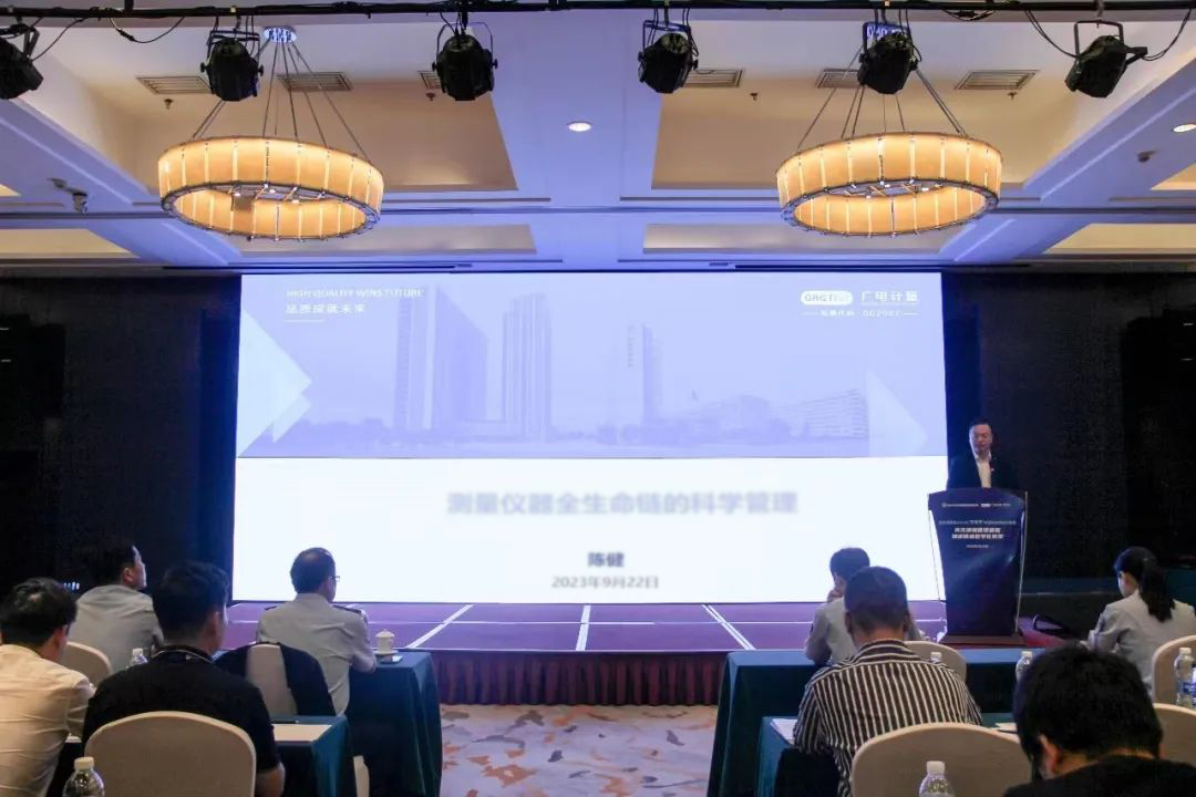 專題培訓中,廣電計量計量事業部計量技術質量部副總監陳健從計量發展史與法律法規,測量儀器特性與選型,計量確認與期間核查,測量儀器分級管理及不合格控制等四個方面闡述了測量儀器全生命鏈的科學管理知識。