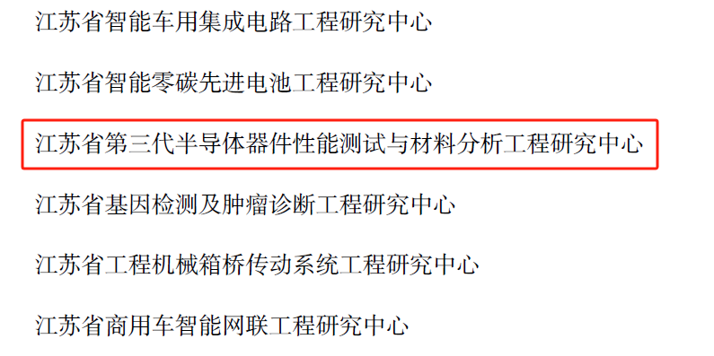 近日,江蘇省發展和改革委員會公布了2023年度新建省級工程研究中心名單,以廣電計量檢測(無錫)有限公司(簡稱:無錫廣電計量)為依托單位,與南京大學現代工程與應用科學學院聯合共建的“江蘇省第三代半導體器件性能測試與材料分析工程研究中心” 獲評認定為江蘇省工程研究中心。