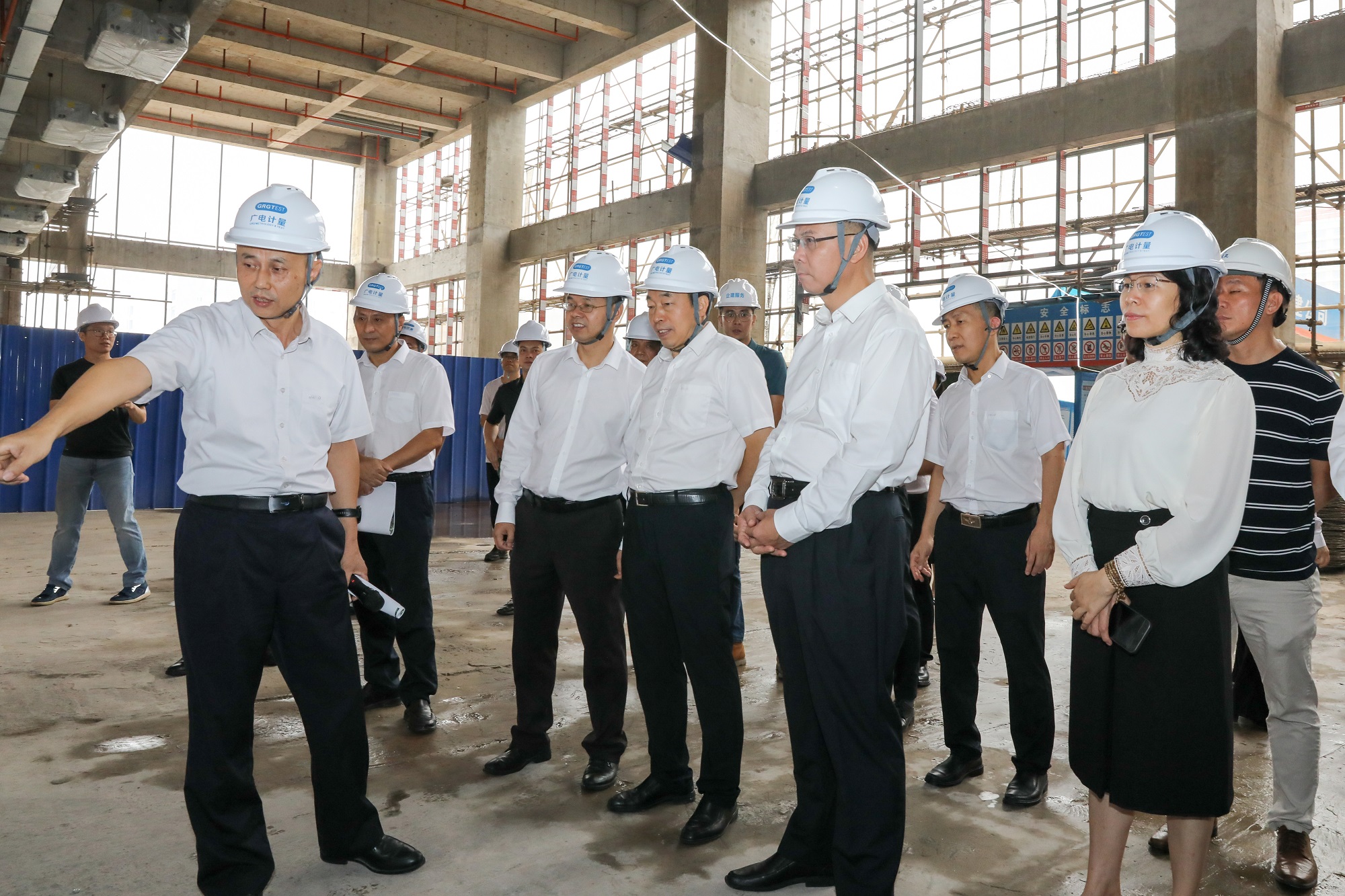 10月19日,廣州無線電集團黨委書記、董事長黃躍珍帶隊調研廣電計量總部基地項目建設情況。集團黨委委員、紀委書記徐子光,黨委委員、副總經理、廣電計量董事長李瑜;廣電計量黨委書記、總經理黃敦鵬,常務副總經理明志茂等陪同調研。