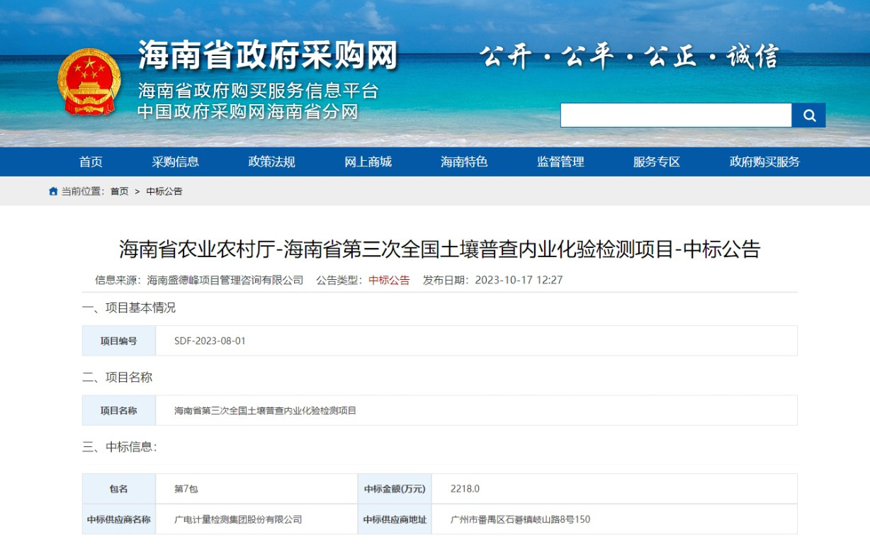 資訊中心公司新聞“三普”再發力 | 廣電計量中標海南省農業農村廳第三次全國土壤普查內業化驗檢測項目