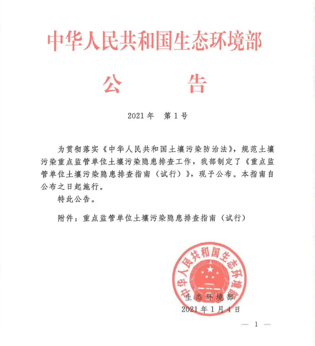 為貫徹落實《中華人民共和國土壤污染防治法》,規范土壤污染重點監管單位土壤污染隱患排查工作,生態環境部于2021年1月4日發布了《重點監管單位土壤污染隱患排查指南(試行)》(以下簡稱《指南》)。