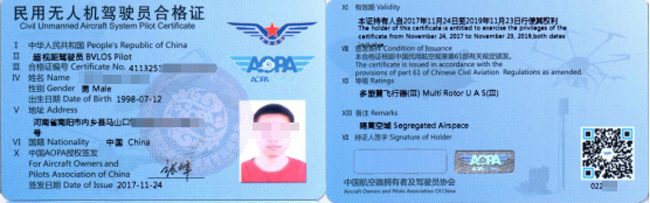 民航局無人機駕駛員執照是由中國民航局下發的電子執照,是中國目前最具權威性的無人機駕駛員執照,獲得各執法機構的認可。