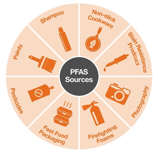 ■ 食品:含有PFAS的材料包裝的食品,使用PFAS的設(shè)備加工的食品,以及在PFAS污染的土壤或水中生長(zhǎng)的動(dòng)植物。