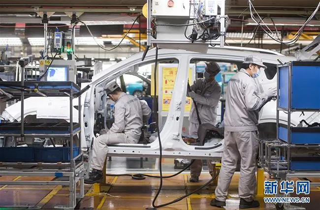 3月24日,工人在東風(fēng)乘用車公司工廠總裝車間流水線上作業(yè)。新華社記者 肖藝九 攝