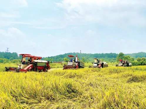 防汛期間,江西進(jìn)賢縣組織黨員搶修隊(duì)幫助農(nóng)民搶收水稻。