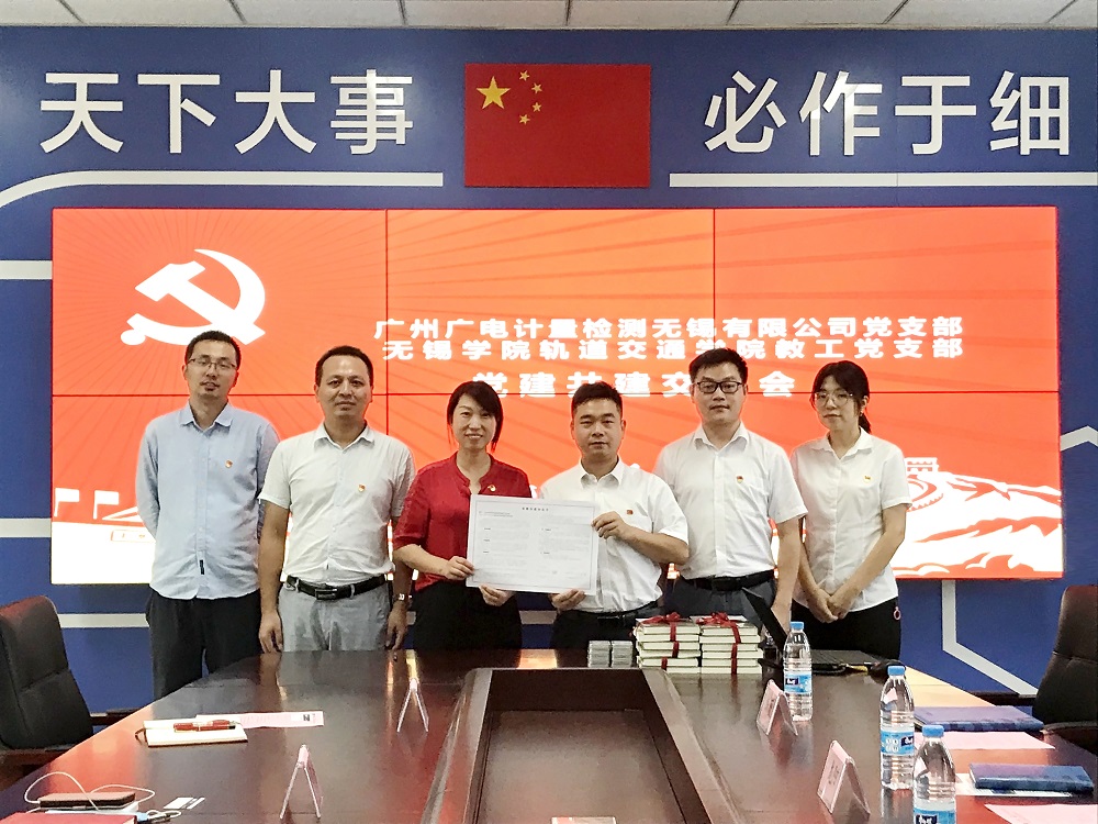 2022年9月7日,廣電計量無錫子公司黨支部赴無錫學院軌道交通學院教工黨支部(以下簡稱“軌道院黨支部”)開展黨建工作交流。雙方支部就校企聯合黨建工作著力點和方向進行了探討,達成了共識,并完成了校企黨建共建簽約。