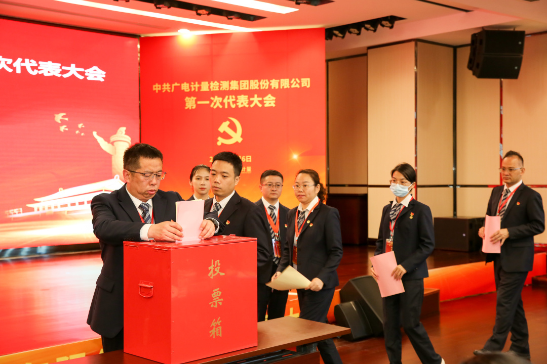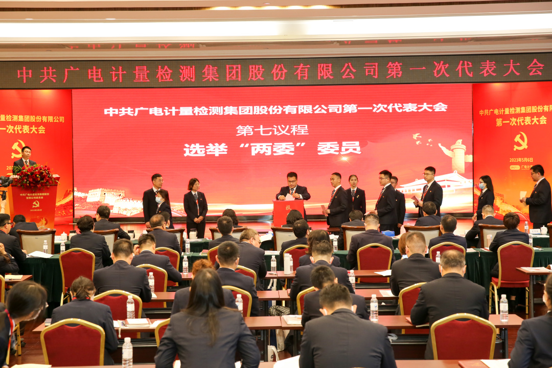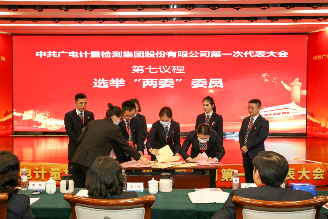 大會以無記名投票的方式進行了選舉。黃敦鵬、謝春霖、鐘桂芳、明志茂、吳乃林、李軍、黃英齡等7位同志當選為中共廣電計量檢測集團股份有限公司第一屆委員會委員;鐘桂芳、蘆蘇建、趙一靜、楊國亨、陳喬等5位同志當選為中共廣電計量檢測集團股份有限公司第一屆紀律檢查委員會委員。